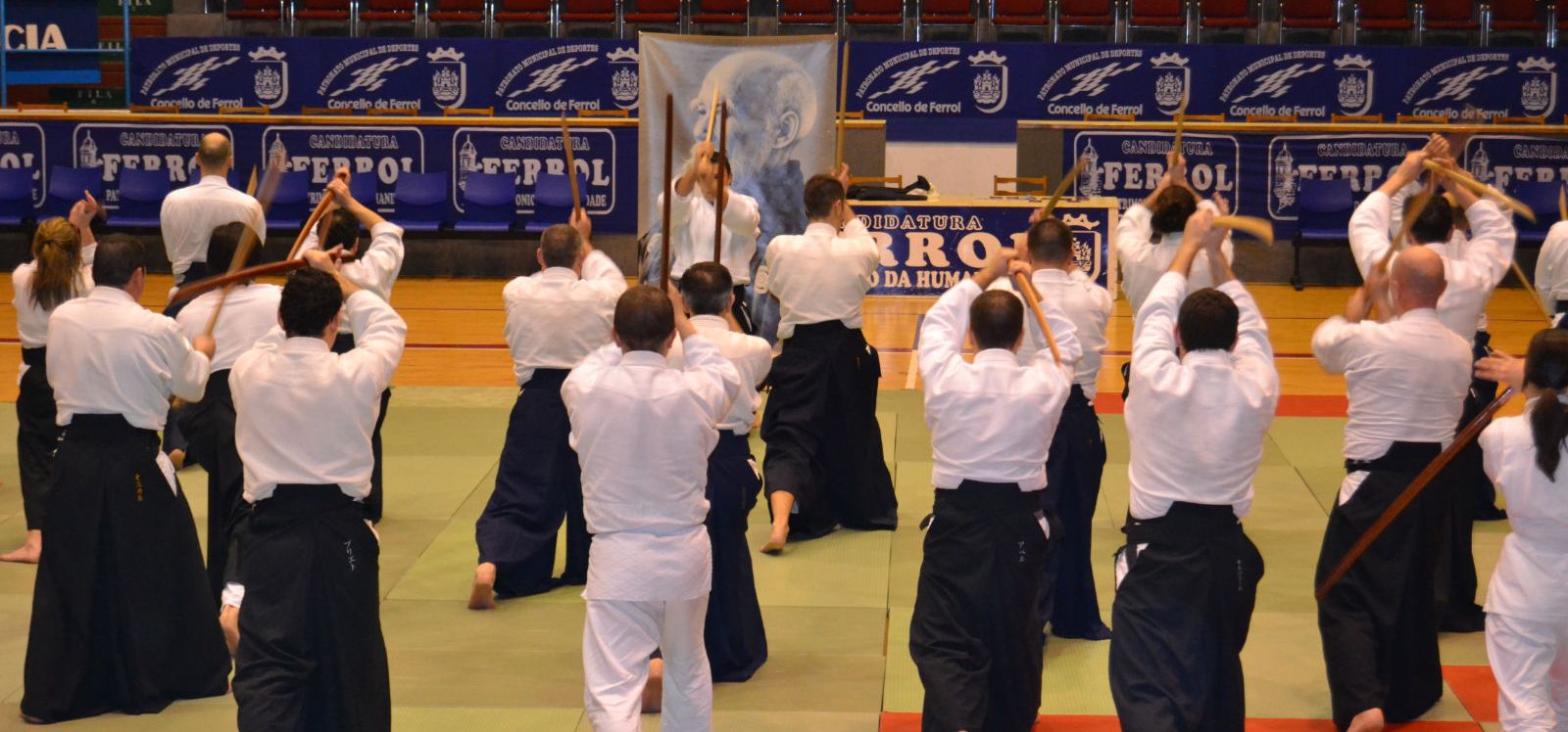Por segundo año consecutivo contamos en Ferrol con la asistencia del maestro Roberto Sánchez (5º Dan) para la realización de nuestro curso nacional del mes de febrero. Con casi cincuenta participantes procedentes de distintos dojos de Galicia, Asturias y León, se superaron con creces nuestras expectativas, pero a mayores de este evidente éxito de convocatoria lo más importante fue el excelente ambiente de trabajo llevado a cabo durante todo el curso.