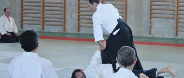 Los exámenes de 1º y 2º dan se celebraron el domingo por la mañana tras la clase técnica. Dieciocho aikidokas se presentaron a las pruebas de paso de grado; y aunque el tatami era grande, unos trescientos metros cuadrados, las parejas estuvieron un poco justas de espacio. Al final todo salió como los que se presentaban a examen habían deseado, y todos ellos vieron premiado su esfuerzo con el aprobado. En cuanto a lo que queda por mejorar, el tribunal echó de menos una muestra más clara del valor añadido que deben mostrar los aspirantes a segundo dan, y que los diferencia de los aspirantes a primer dan. En la parte que nos toca, esto es algo que los docentes debemos también enfatizar y ayudar a comprender a los candidatos.