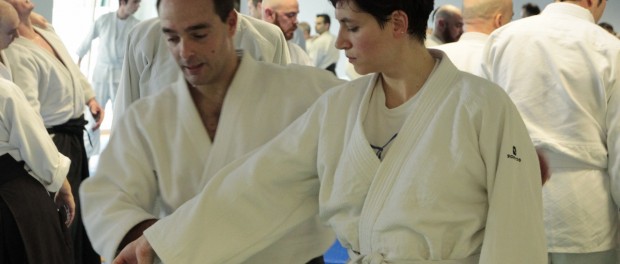 Continuando con varios ejercicios sobre katate dori entrando en irimi por abajo para crear el desequilibrio, así como absorbiendo y entrando por arriba con el fin de allanar el camino e ir asimilando los movimientos para terminar con Tenchi nage.